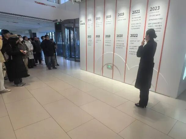走进快手园区,浓厚的创新氛围与人文气息扑面而来。在讲解员的引导下,同学们首先通过企业发展时间轴全景了解了快手的成长历程:从2011年正式推出产品,到2013年自建乌兰察布数据中心奠定技术根基,2016年启动电商业务,2018年日活跃用户数突破1亿,2021年在香港联交所主板挂牌上市,再到实现全面盈利、电商突破万亿规模,每一个关键节点都彰显着企业的稳健发展与行业影响力。数据中心的技术架构、电商生态的构建历程,让同学们直观感受到互联网企业从技术研发到业务拓展的全链条布局。