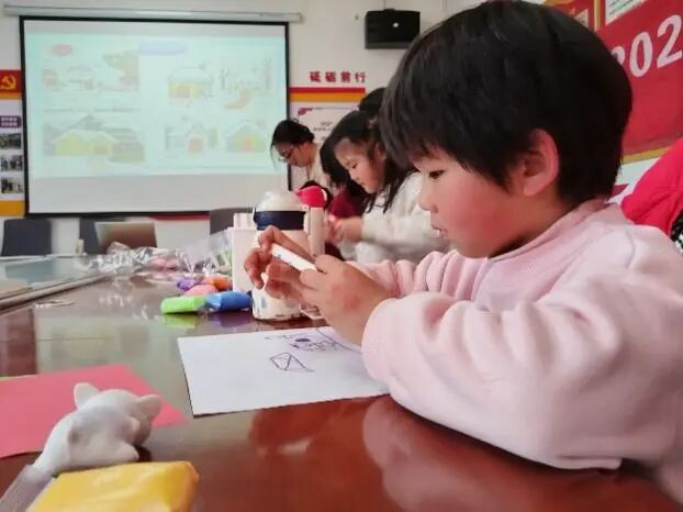紧接着,孩子们便可以动手进行“冰雪魔法”主题的创作。社工准备了黏土 、彩纸、彩笔等材料,鼓励孩子围绕冰雪主题自由发挥,创作一幅画、一个黏土作品,或者用彩纸剪贴出立体的冰雪场景。孩子们在创作过程中能够相互帮助,共享材料,主动交流创作理念。社工在旁引导并鼓励孩子们大胆实践自己心中的想法,每一件作品都是独一无二的。有的孩子选择绘画,画出了雪人和小木屋,有的孩子选择粘土,捏出了雪人和糖葫芦,每个人都有自己的奇思妙想。