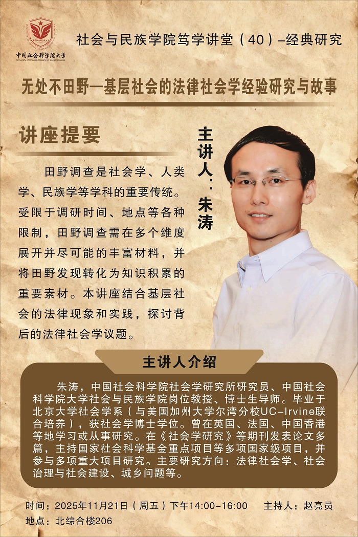 欧美av 笃学讲堂(40)经典研究—朱涛:无处不田野—基层社会的法律社会学经验研究与故事